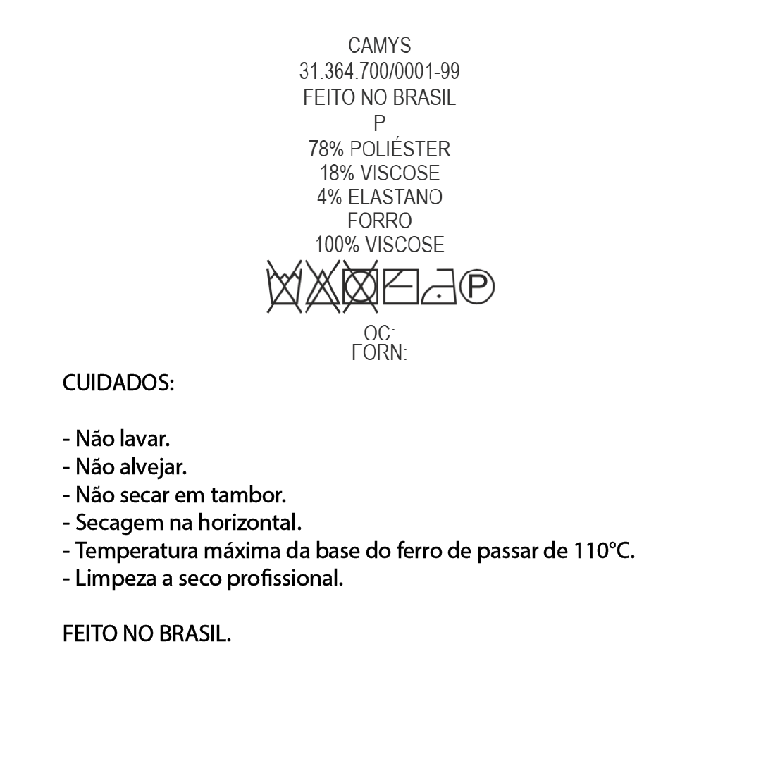 Shape e Modelagem: A modelagem exclusiva possui um shape reto, valorizado por pences frontais. Este detalhe de construção desenha um volume sofisticado no quadril, garantindo um caimento perfeito.