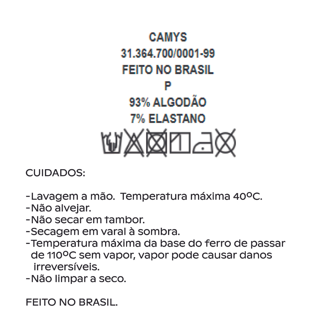 Composição: Tecido: Algodão Premium | 93% algodão e 7% elastano