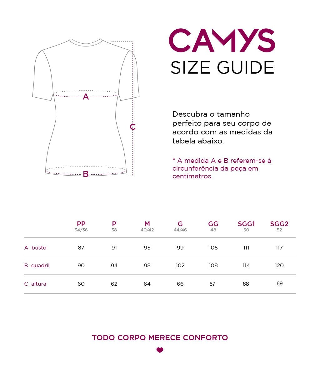 Assim você garante a escolha do tamanho perfeito para seu corpo e evita trocas desnecessárias!