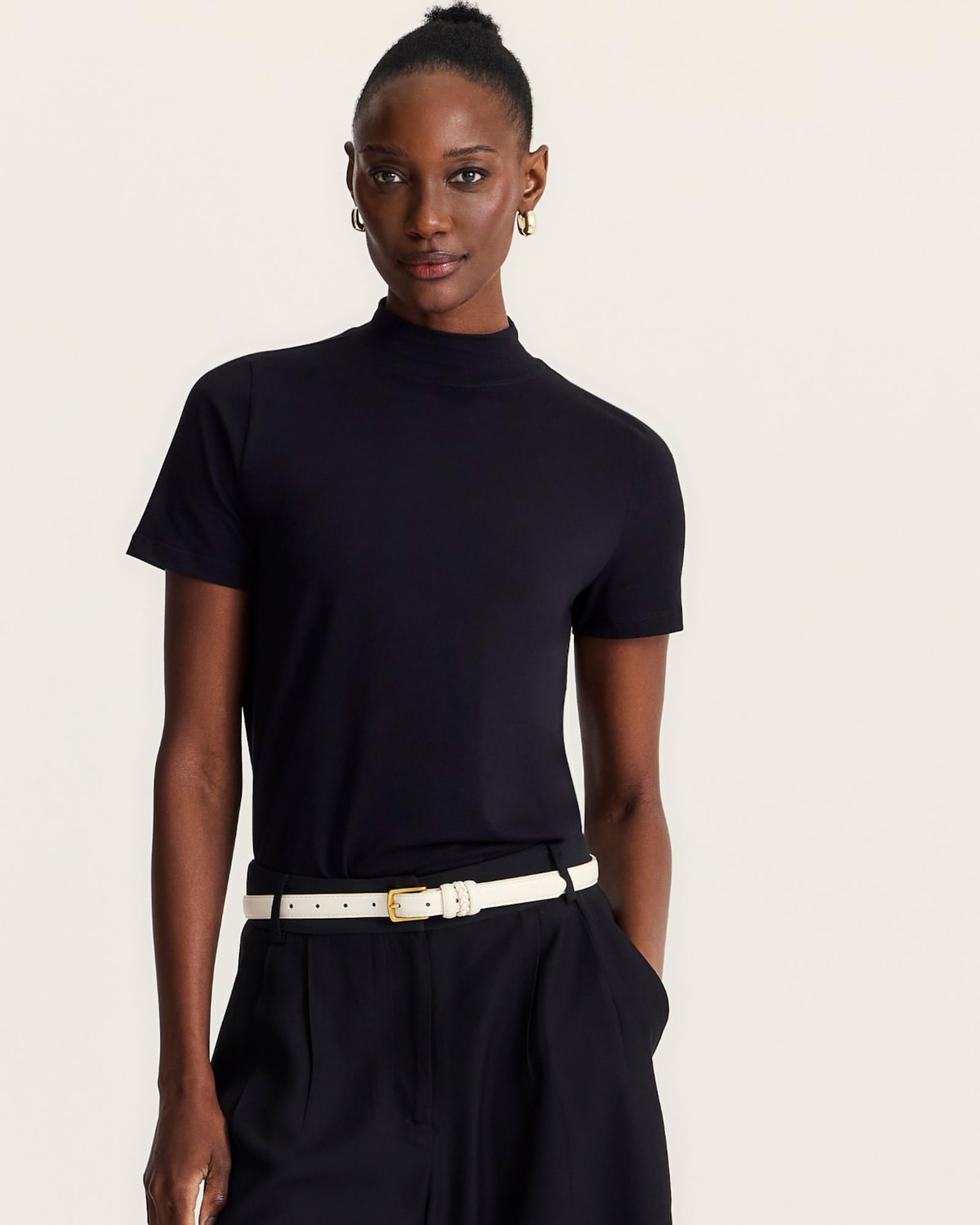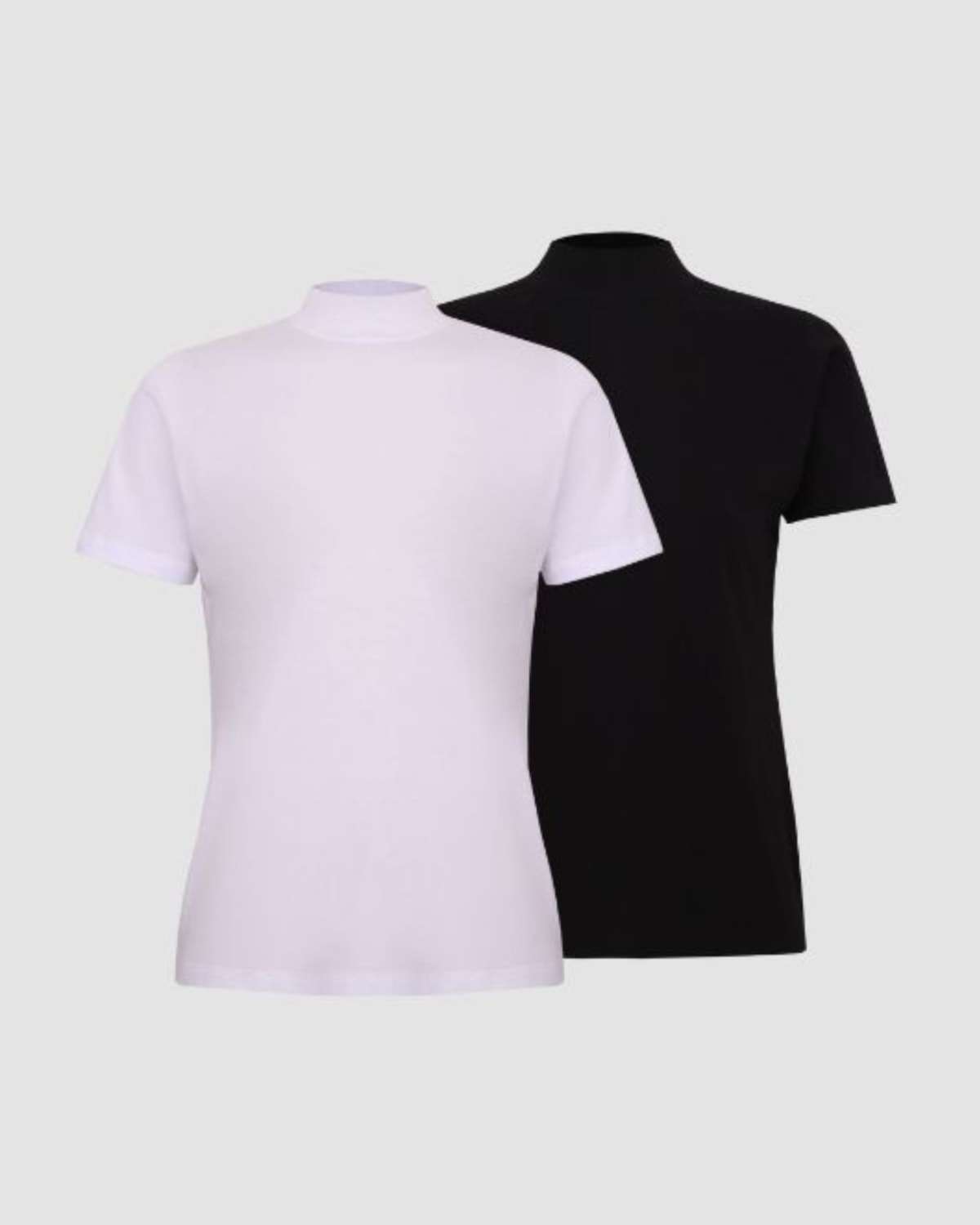 Conteúdo: 01 Camiseta em Algodão Egípcio Gola Alta Branca + 01 Camiseta em Algodão Egípcio Gola Alta Preta (tamanho escolhido pelo cliente)