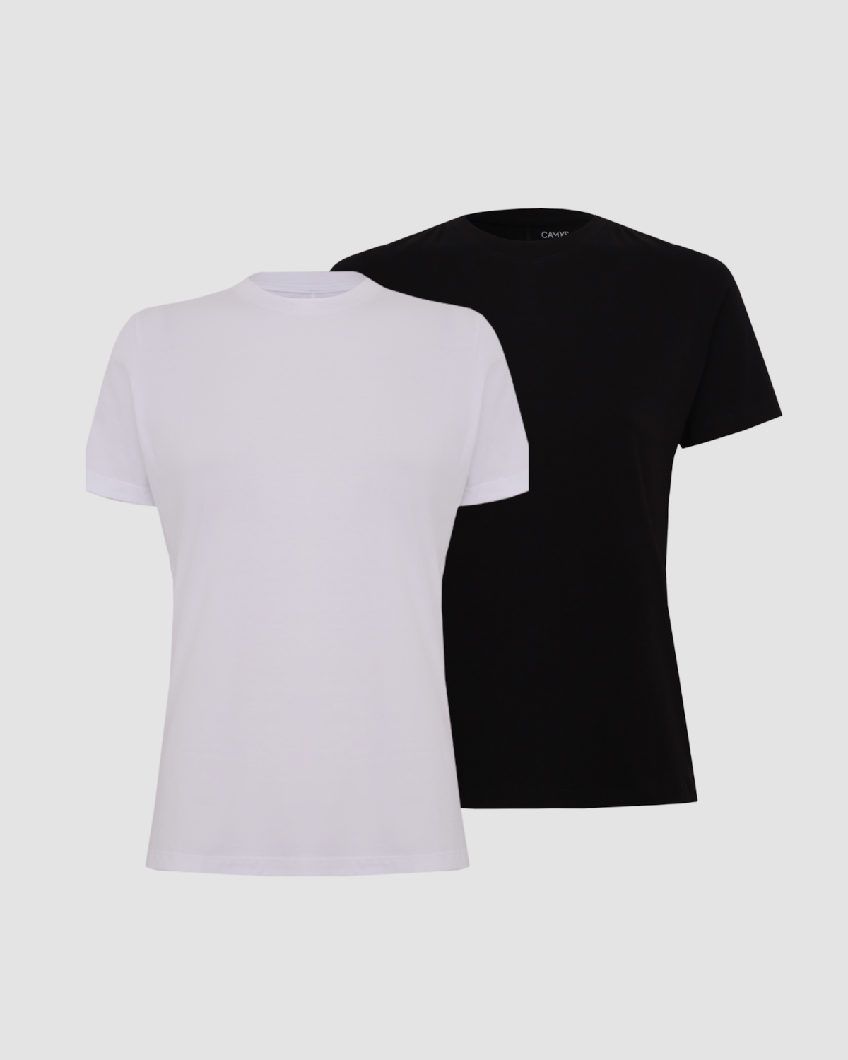 Este kit contém o melhor do conforto e estilo com um desconto exclusivo de 15% OFF. Com duas camisetas femininas em cores essenciais (branco e preto). As camisetas, confeccionadas em algodão egípcio de alta qualidade, são peças versáteis que elevam qualquer guarda-roupa.