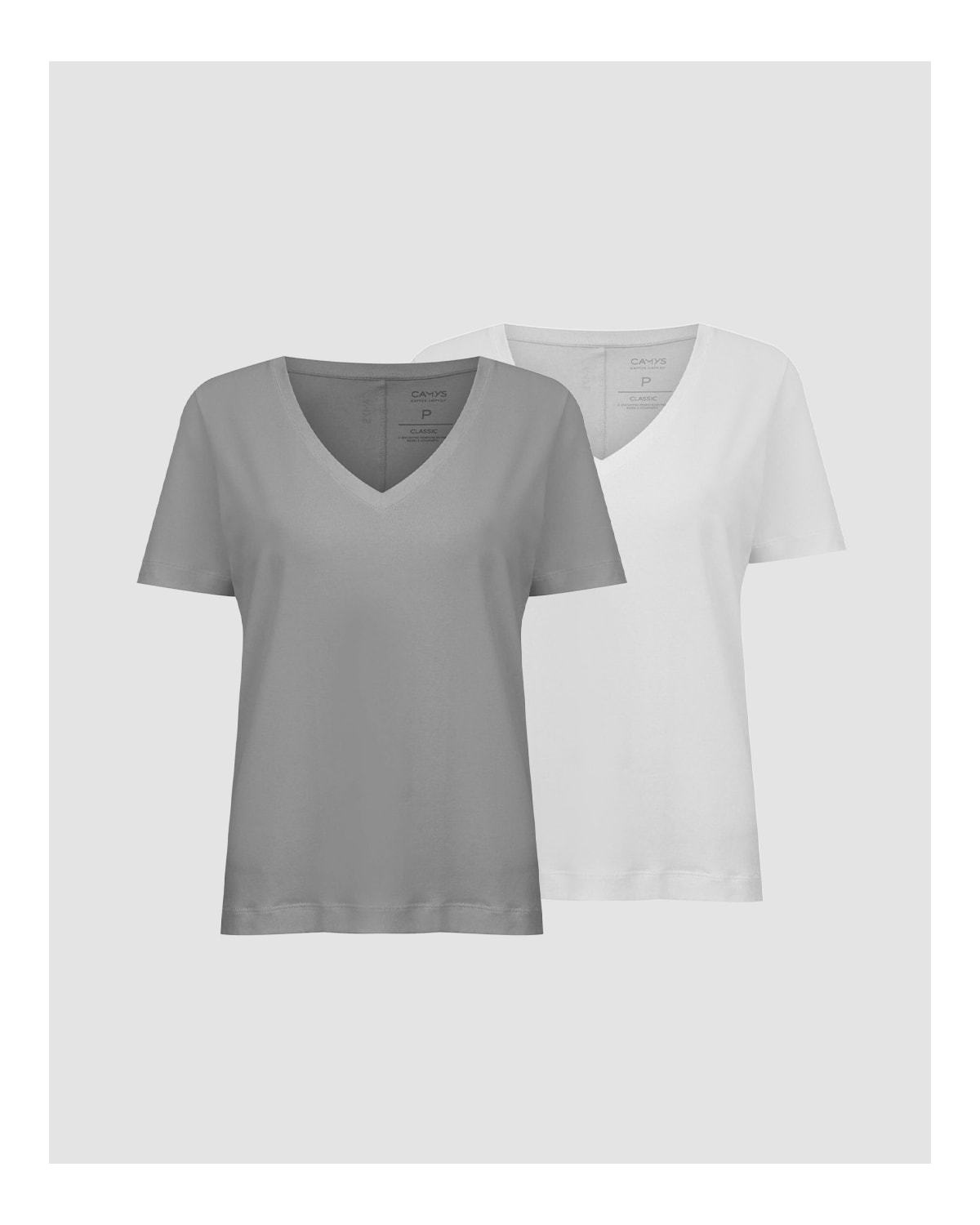 Conteúdo: 01 Camiseta em Algodão Egípcio Gola V Branca + 01 Camiseta em Algodão Egípcio Gola V Cinza Silver (tamanho escolhido pelo cliente)