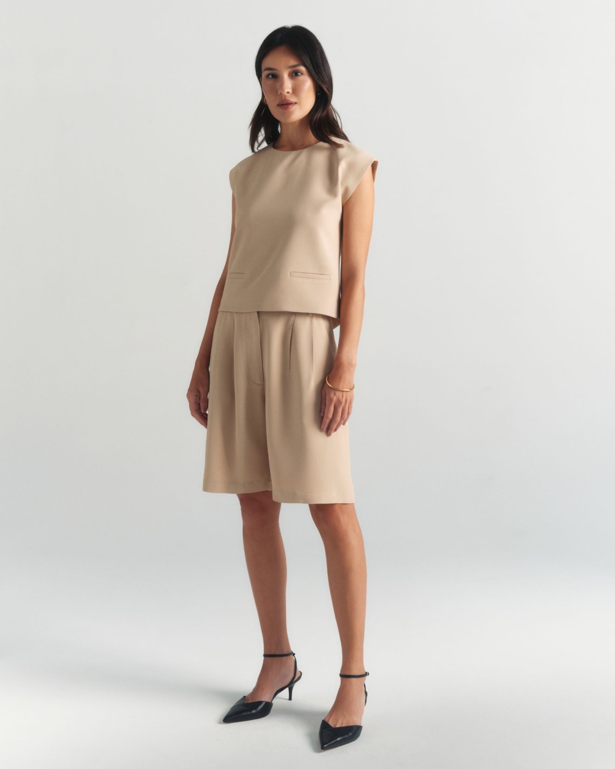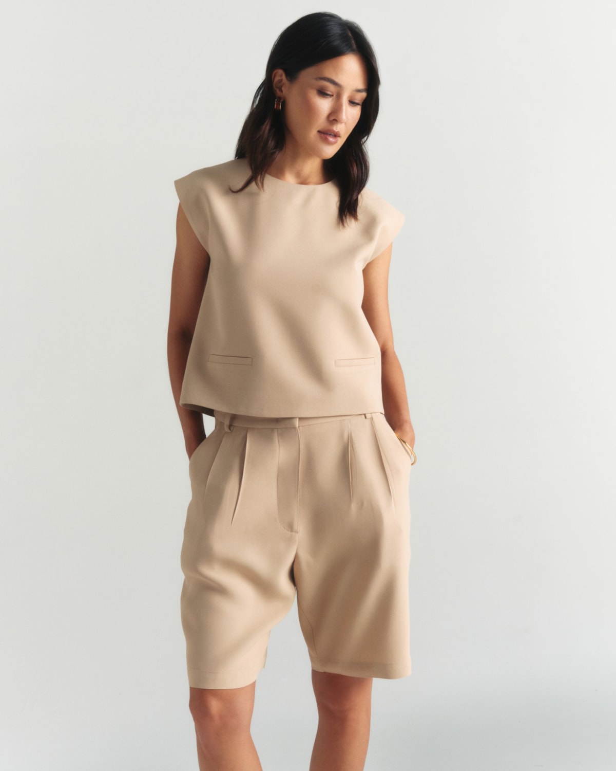 Styling e Versatilidade: Uma peça que redefine a alfaiataria para os dias mais quentes. Combine com o Blazer para um conjunto moderno e poderoso, ou com uma de nossas regatas clássicas para uma proposta casual chic.
