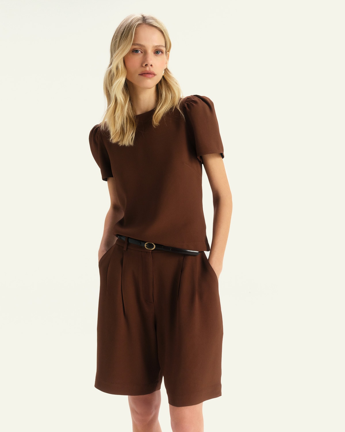 Bermuda Alfaiataria, confeccionada em Crepe Patou.
