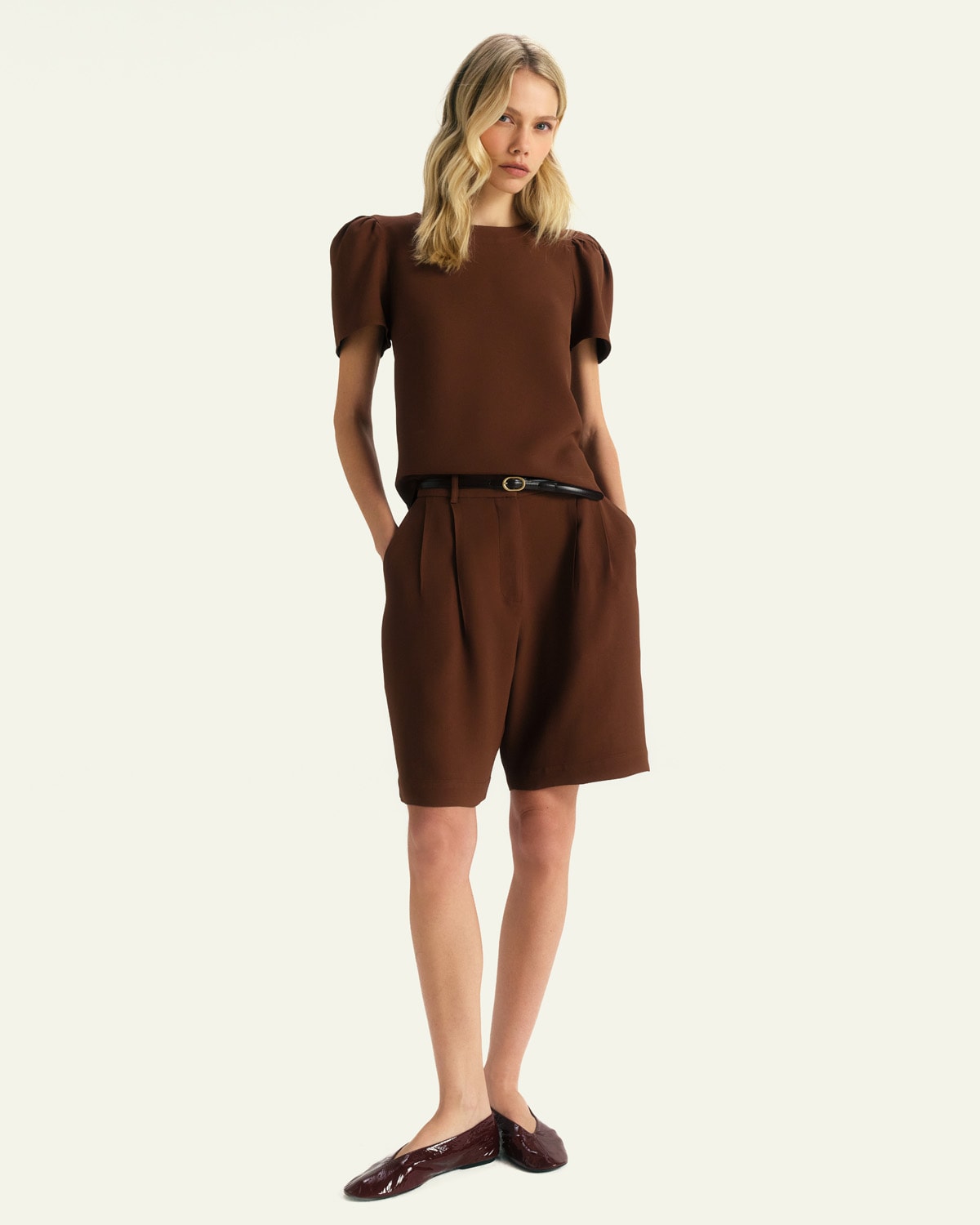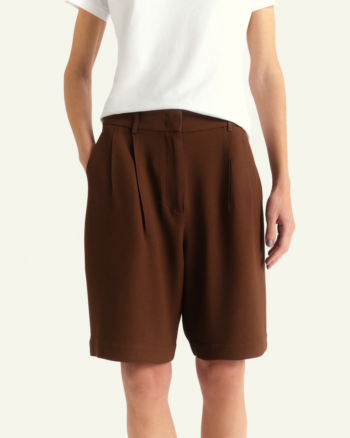 Modelagem Exclusiva: Comprimento de bermuda com pregas duplas.