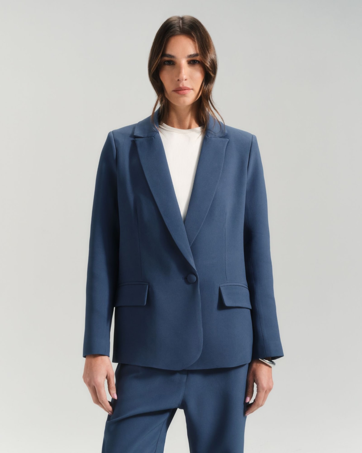 Blazer Alfaiataria Crepe Patou Azul Navy