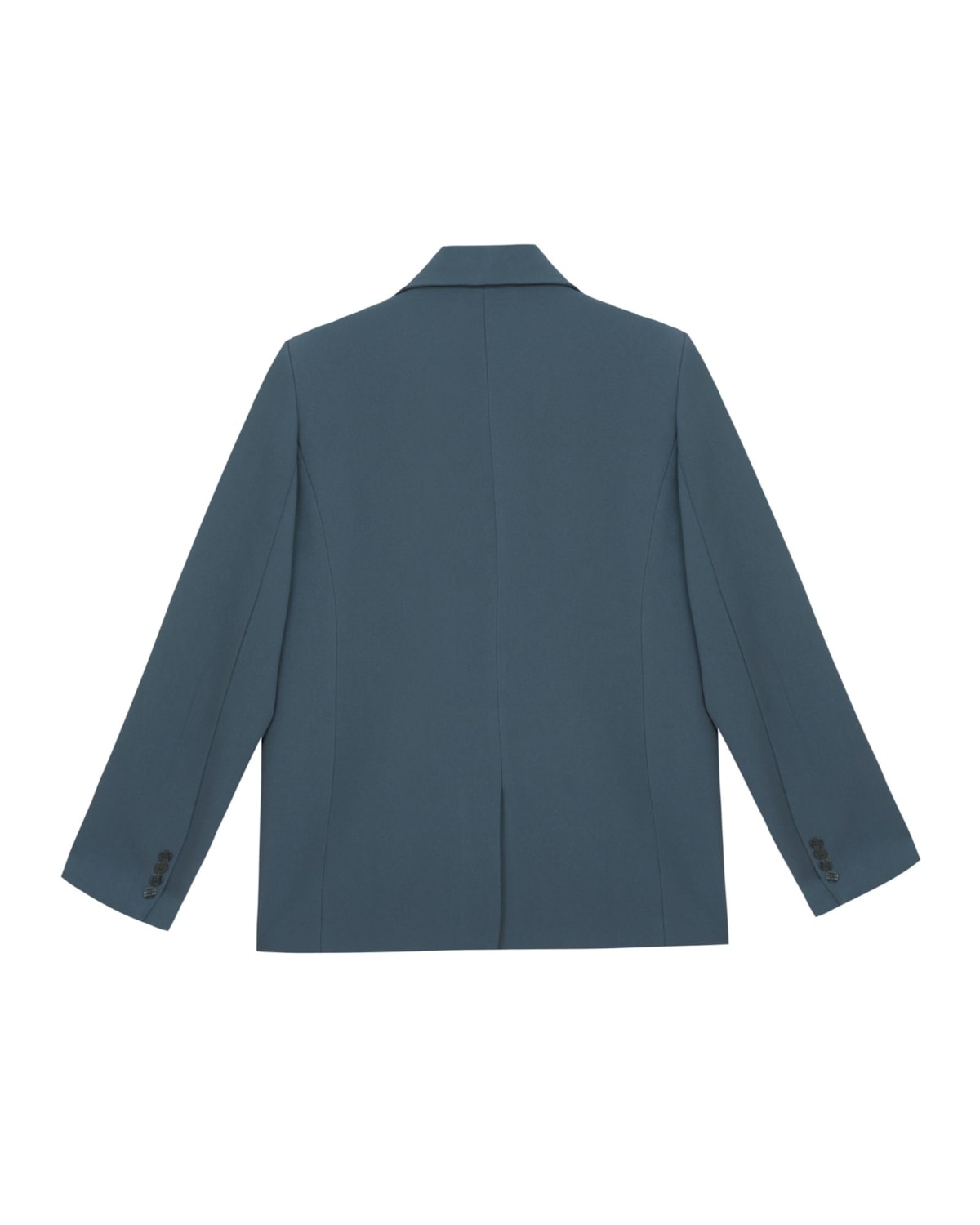 Mangas e Detalhes: As mangas possuem acabamento de alfaiataria com botões funcionais no punho, um detalhe que permite versatilidade no styling. O design é complementado por uma lapela clássica e fechamento por um botão.
