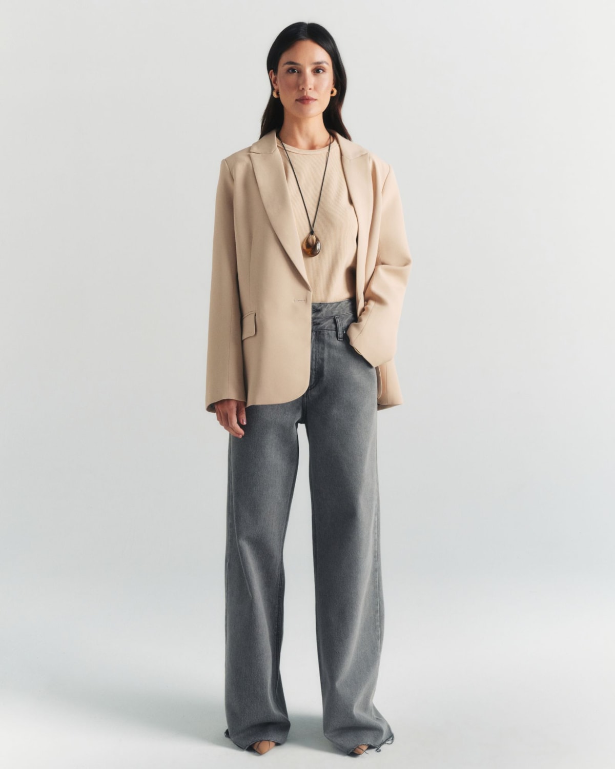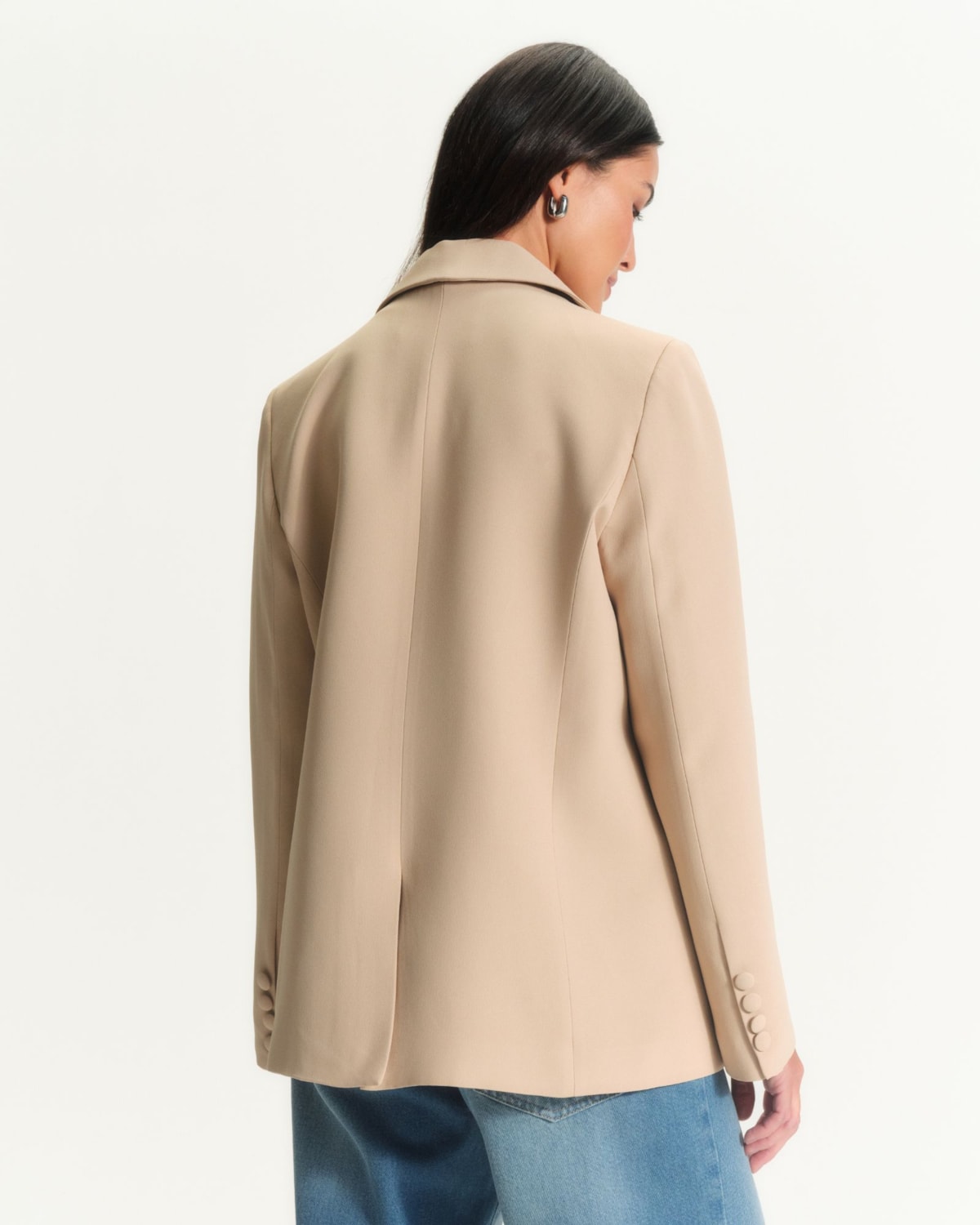 Styling e Versatilidade: A peça-chave para um look de poder contemporâneo. Sua silhueta oversized e alongada cria uma declaração de estilo, seja combinada com a precisão da alfaiataria ou usada para dar estrutura a peças mais delicadas.