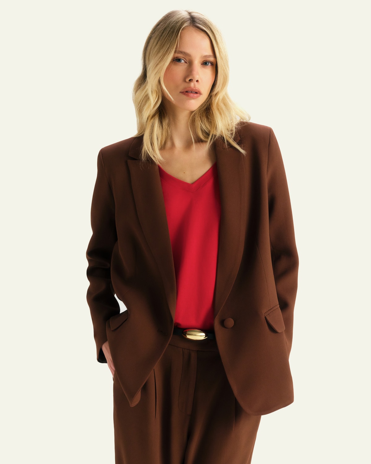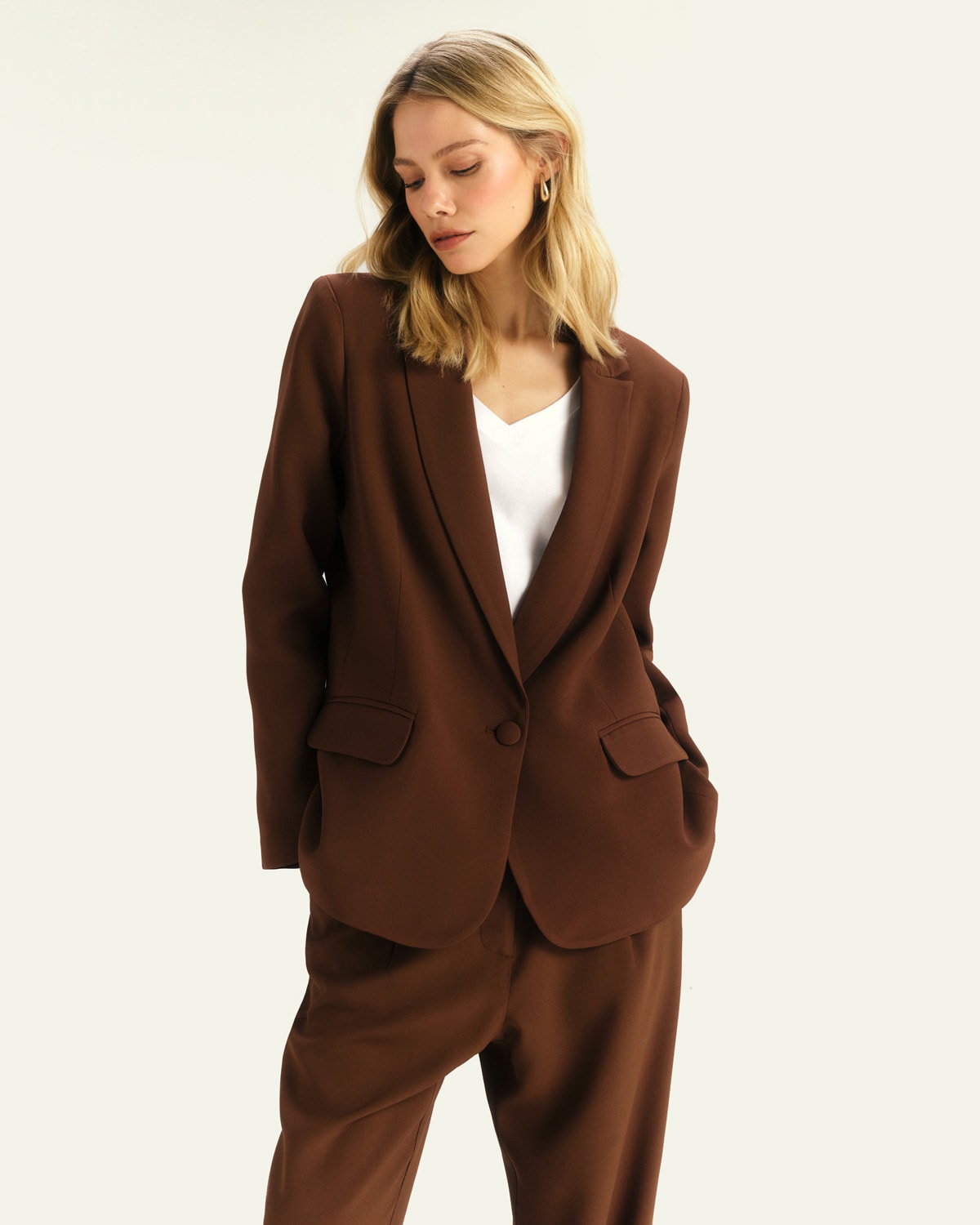 Blazer Alfaiataria Dopamine em Crepe Patou - Marrom Coffee
