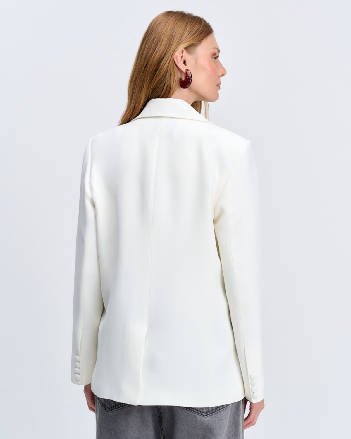 Styling e Versatilidade: A peça-chave para um look de poder contemporâneo. Sua silhueta oversized e alongada cria uma declaração de estilo, seja combinada com a precisão da alfaiataria ou usada para dar estrutura a peças mais delicadas.