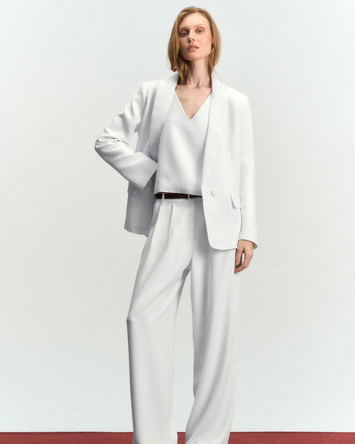 Tecido Premium e Forro: Confeccionado em Crepe Patou, um tecido nobre de toque macio e caimento fluido que acompanha os movimentos com suavidade. O forro interno foi escolhido por sua alta respirabilidade, garantindo conforto durante todo o dia.