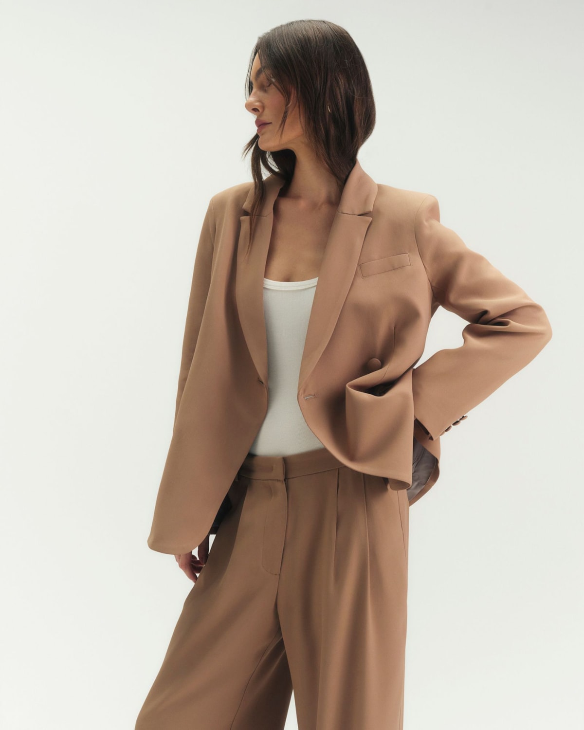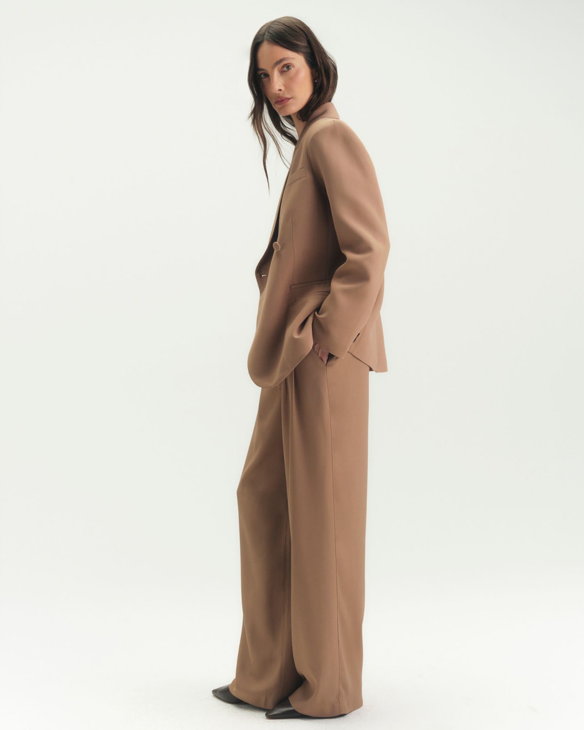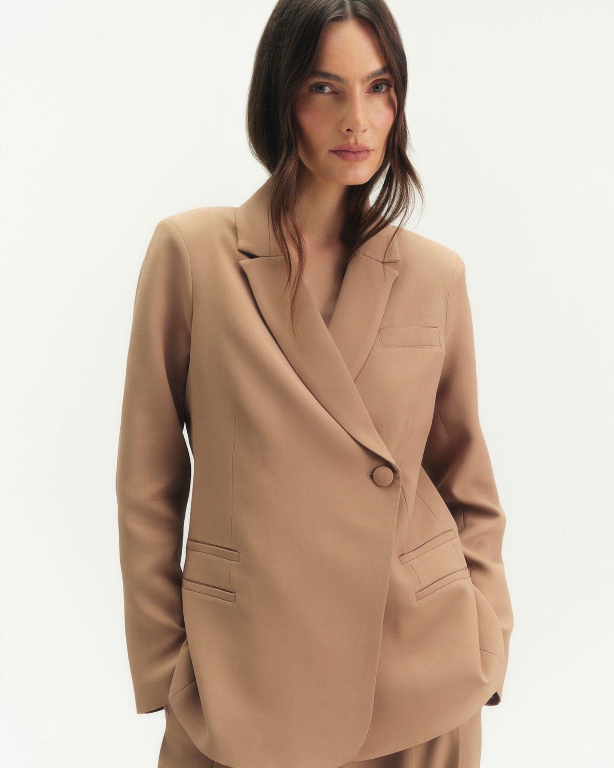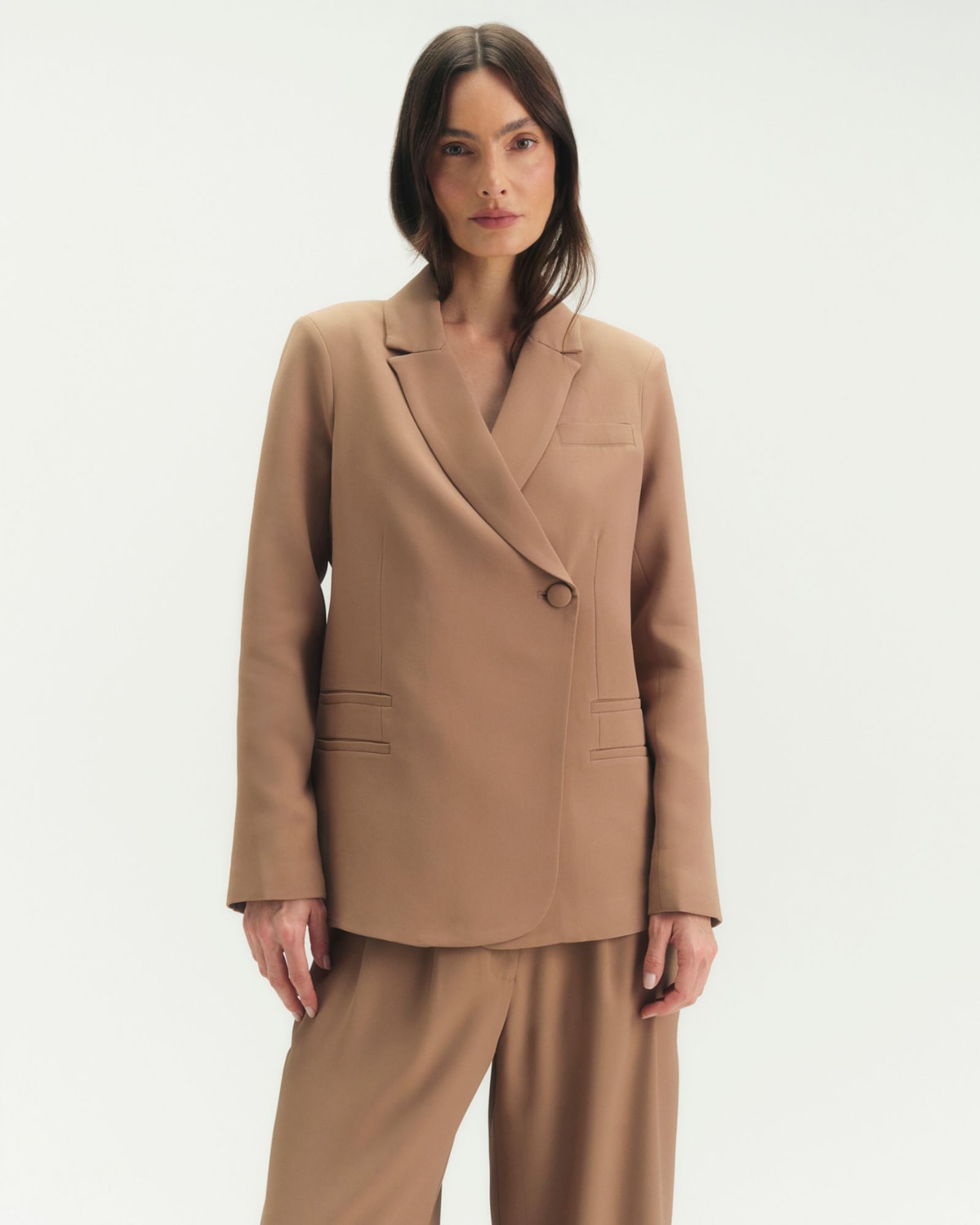Shape e Estrutura: Modelagem comfort elegante e levemente alongada, consagrada na linha Crepe Patou. A estrutura foi desenvolvida para vestir com sofisticação, oferecendo um caimento perfeito sem restringir movimentos.