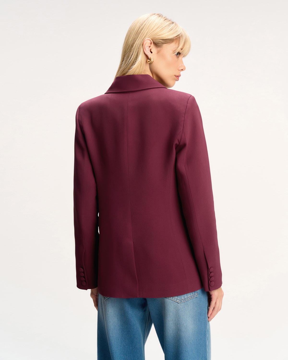 Lapela e Fechamento: Apresenta lapela clássica e atemporal, proporcionada para equilibrar o design. O fechamento frontal é transpassado (wrap) com um único botão, conferindo um visual limpo e refinado.