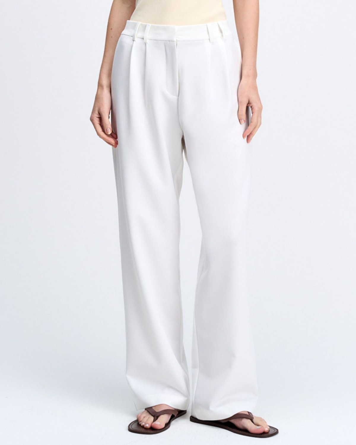 A sofisticação da alfaiataria em sua forma mais pura e versátil. Na cor Off White, esta calça se torna uma peça-chave para looks de alto impacto, com um design que une segurança, qualidade e um acabamento impecável.