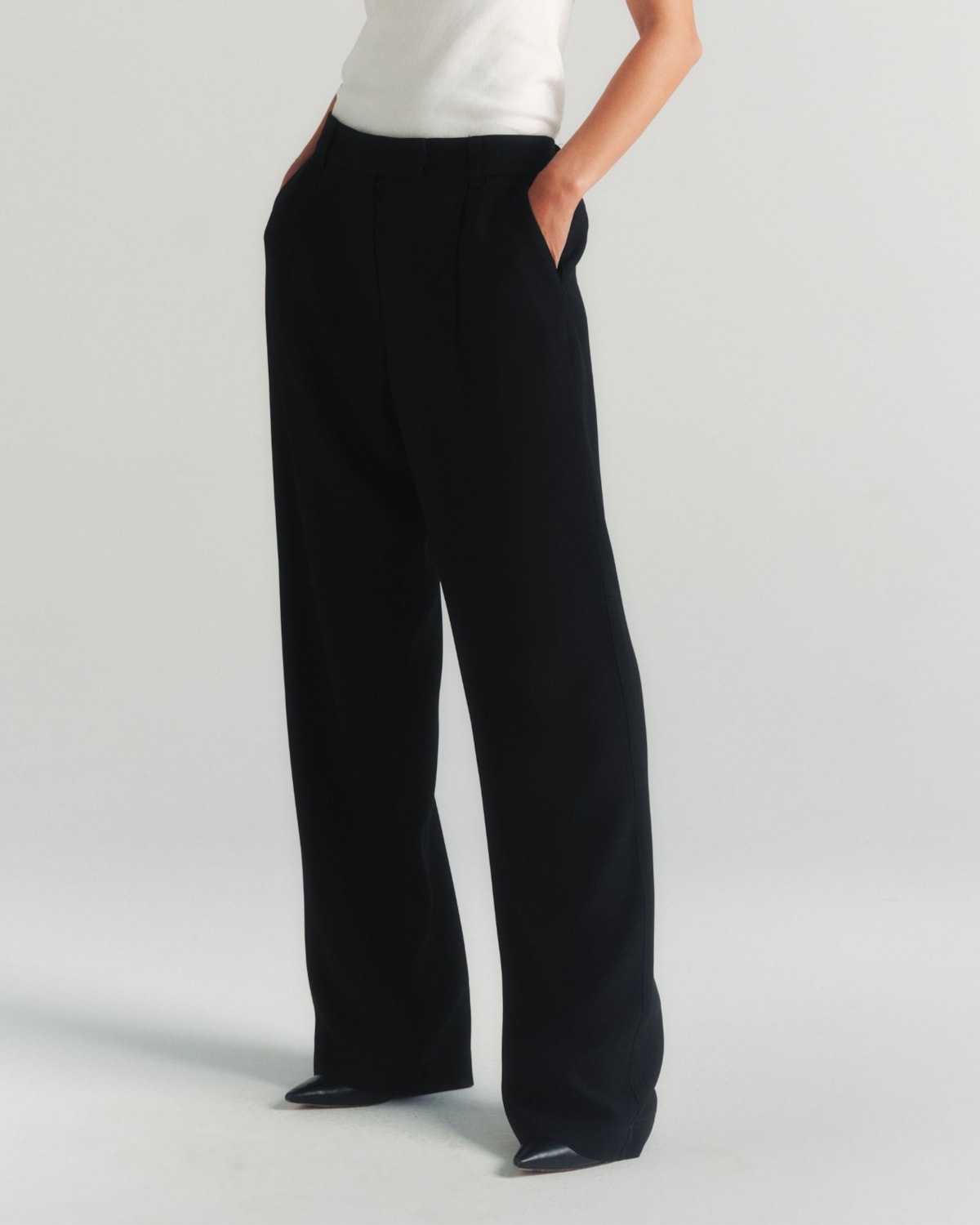 Cintura e Detalhes: A cintura possui um cós estruturado com fechamento discreto, garantindo um caimento perfeito na região. Os bolsos frontais, modelo faca, são funcionais e embutidos de forma a não criar volume.