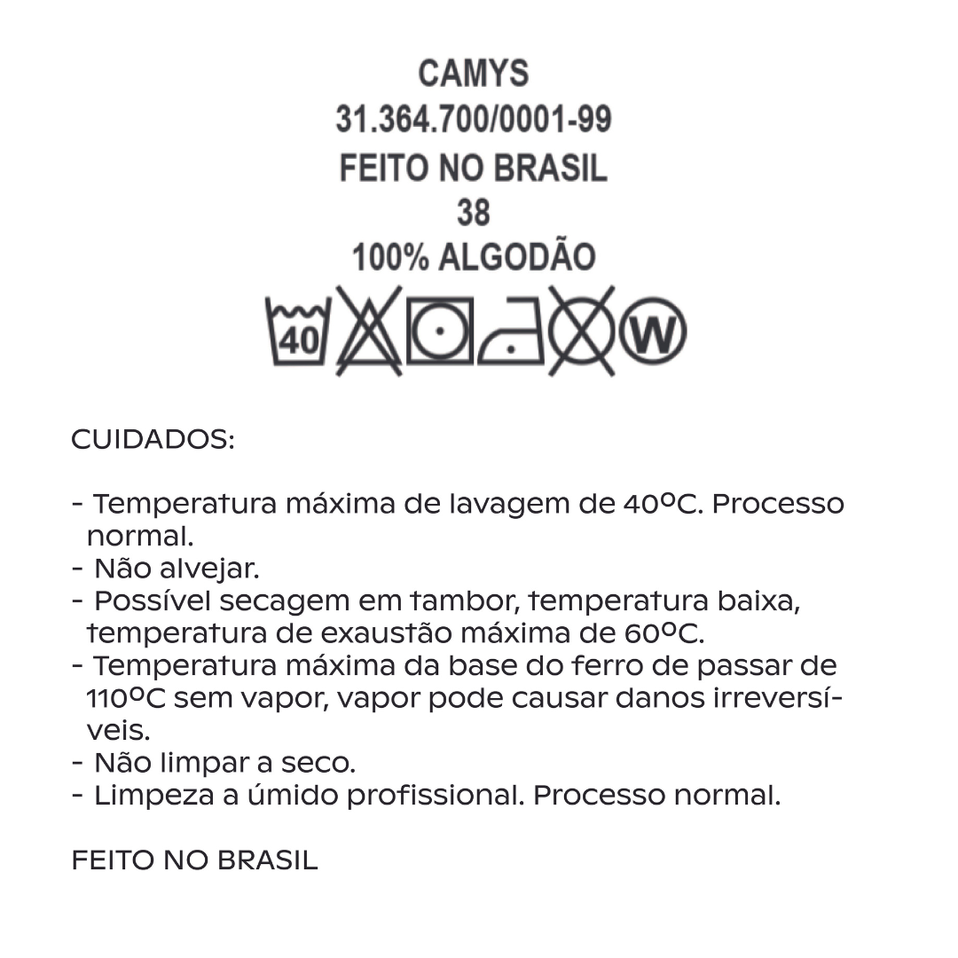 Nossa modelagem é mais ampla, portanto, sempre consulte a TABELA DE MEDIDAS antes de escolher sua nova Camys.
