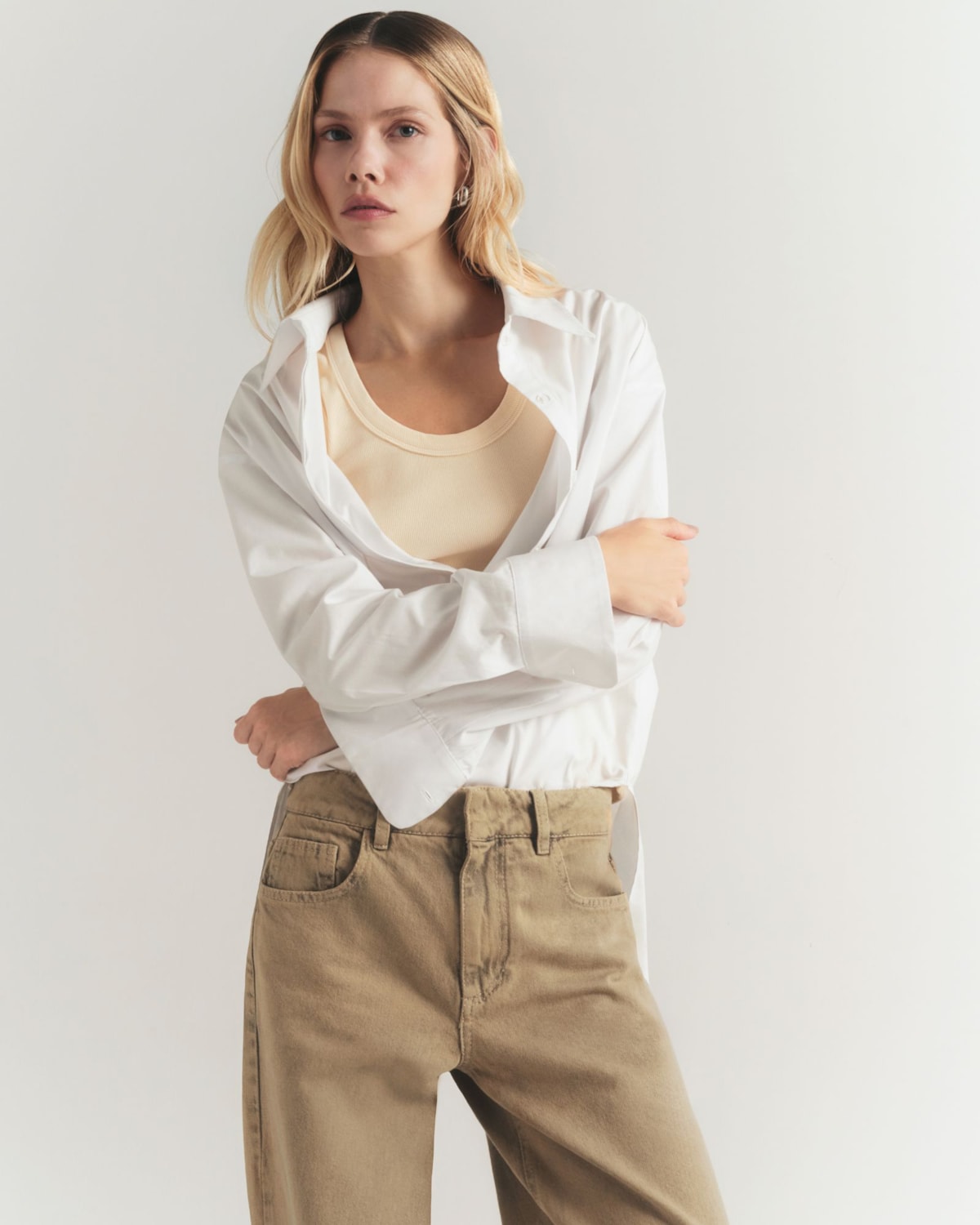 Styling e Versatilidade: A peça mais versátil da estação, que une a alma despojada do denim com a elegância da alfaiataria. Combine com o Blazer Dopamine para um look de trabalho moderno ou com nossas regatas para uma proposta casual chic na primavera.