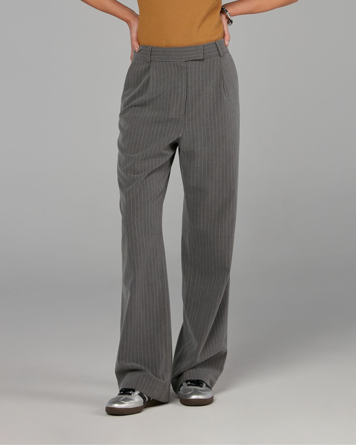 A Calça Reta Alfaiataria Dopamine Gray Giz traz mais sofisticação para o office look, a padronagem risca de giz em fio tinto se une a modernidade do corte reto. Atemporal e versátil, essa calça é uma peça-chave que transita entre o tradicional e o despojado com facilidade.