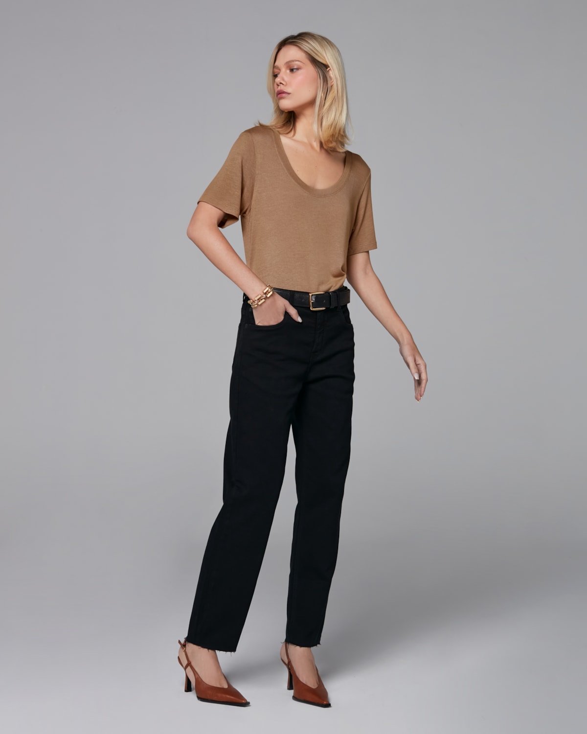Depois de criar o jeans perfeito, resolvemos ir além e inovar ainda mais no quesito conforto. Assim nasceu a nova Calça Reta Camys Slim Cropped.