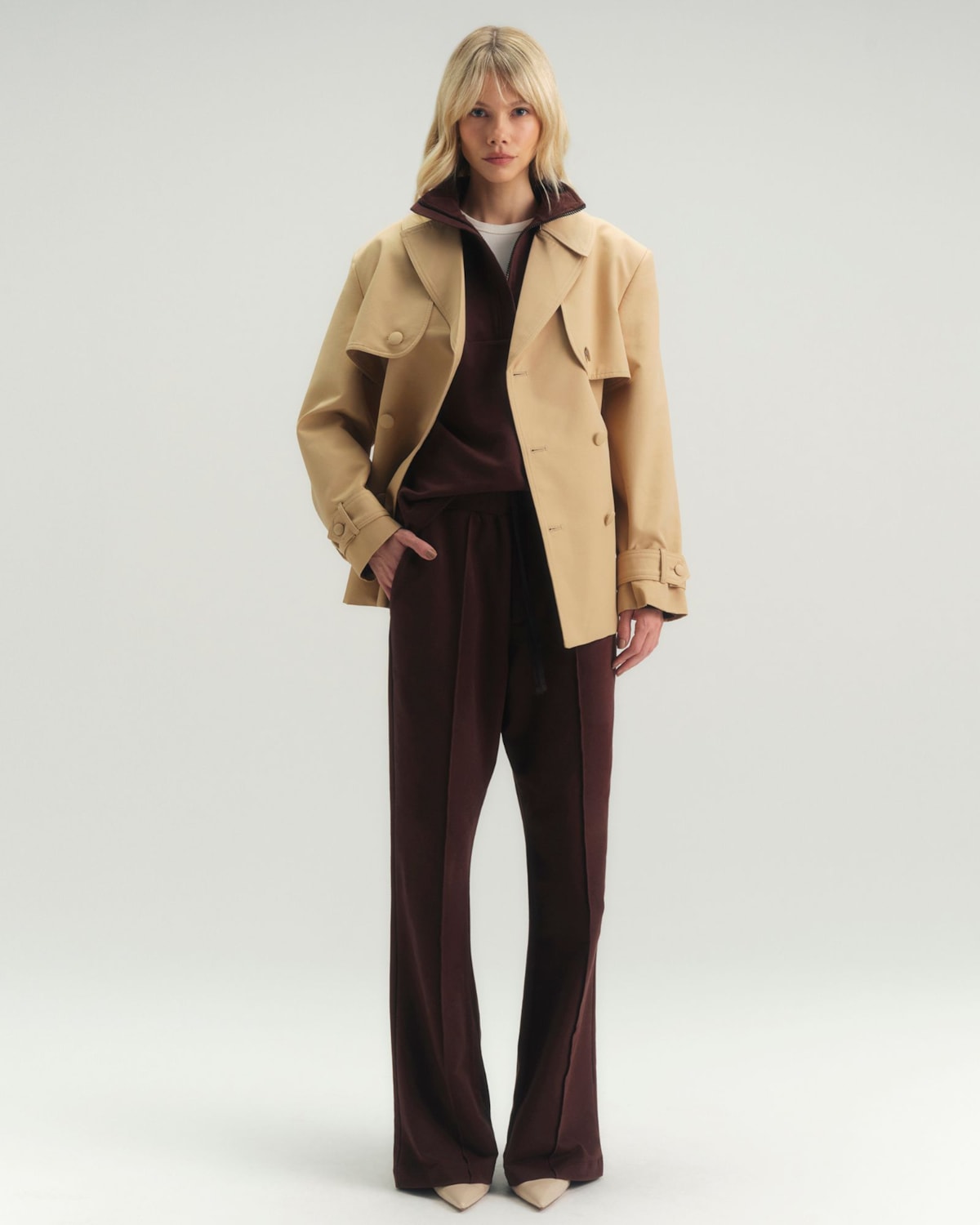 Detalhes: Apresenta um design inteligente com cós com elástico nas costas, proporcionando ajuste perfeito e conforto. O destaque fica por conta dos frisos frontais nas pernas, que alongam a silhueta de forma refinada, além dos bolsos laterais que unem funcionalidade e estética minimalista.