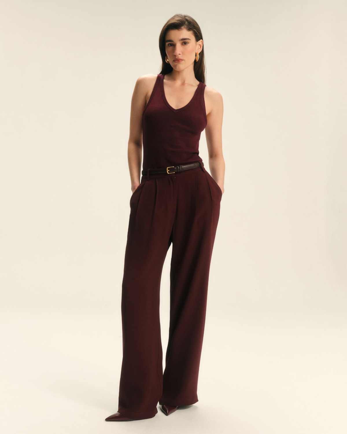 Calça Alfaitaria Dopamine Wide Leg Crepe Patou - Bordô Classic