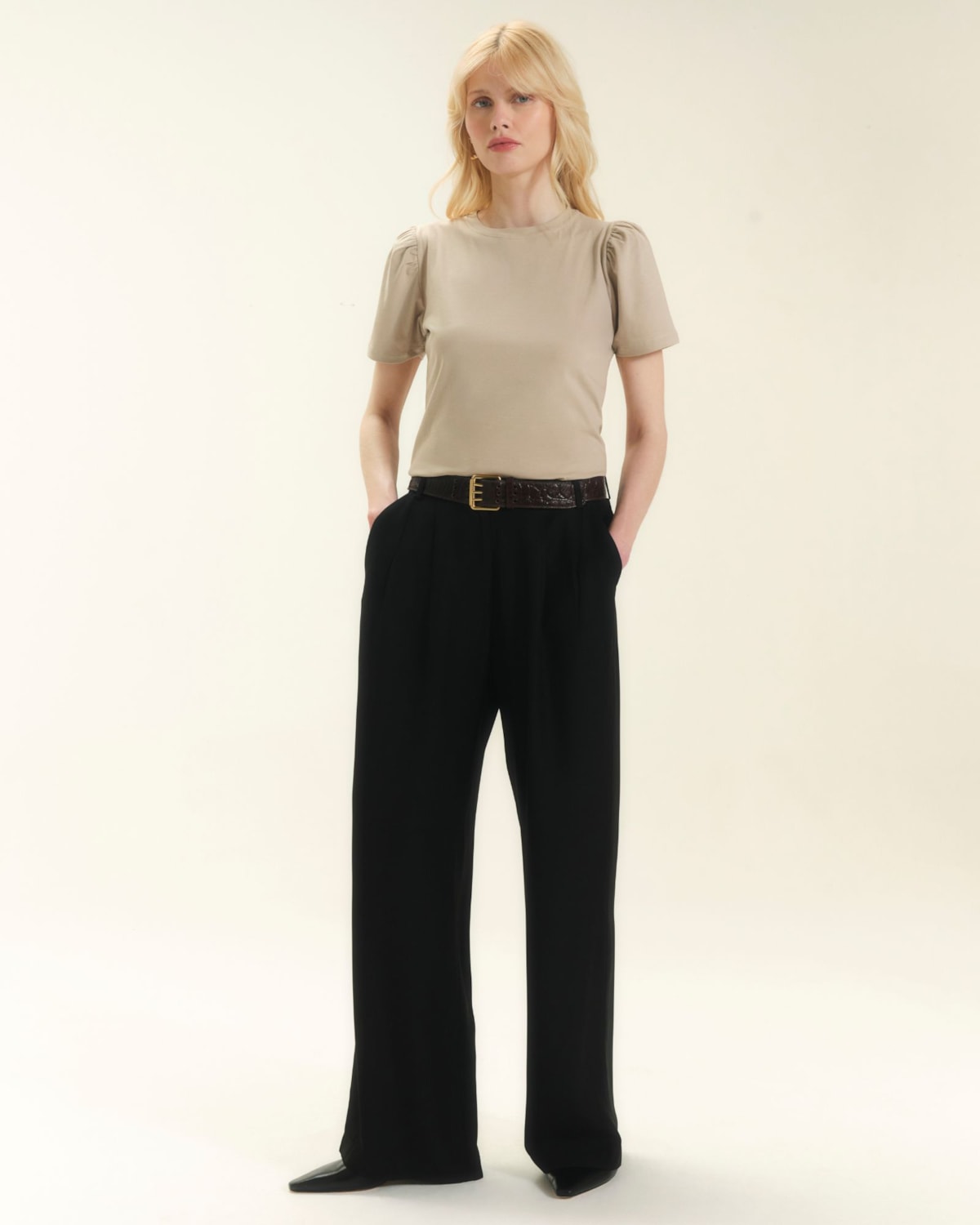 Bege Champagne: Discreto, moderno e ultra versátil. O nosso bege champagne é aquele neutro com alma de essencial, nem quente, nem frio, perfeito pra qualquer estação. Com um toque de cinza, ele funciona como base neutra para composições minimalistas ou como ponto de equilíbrio em looks mais vibrantes.
