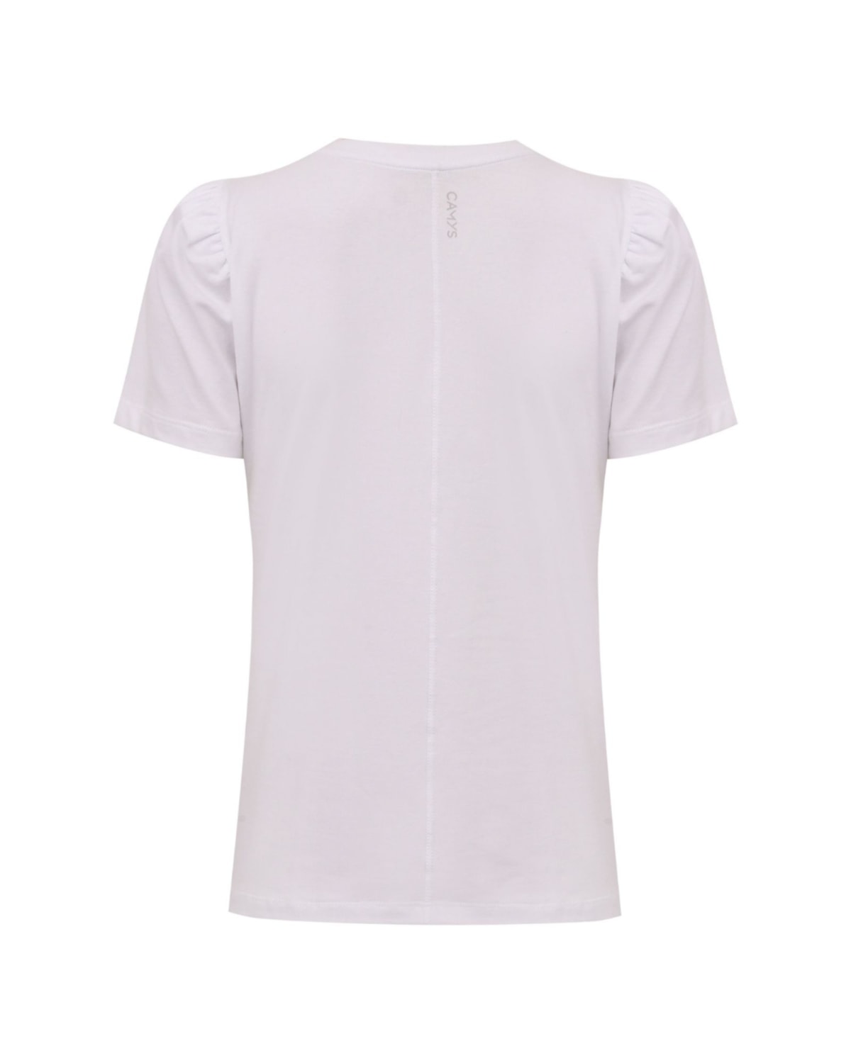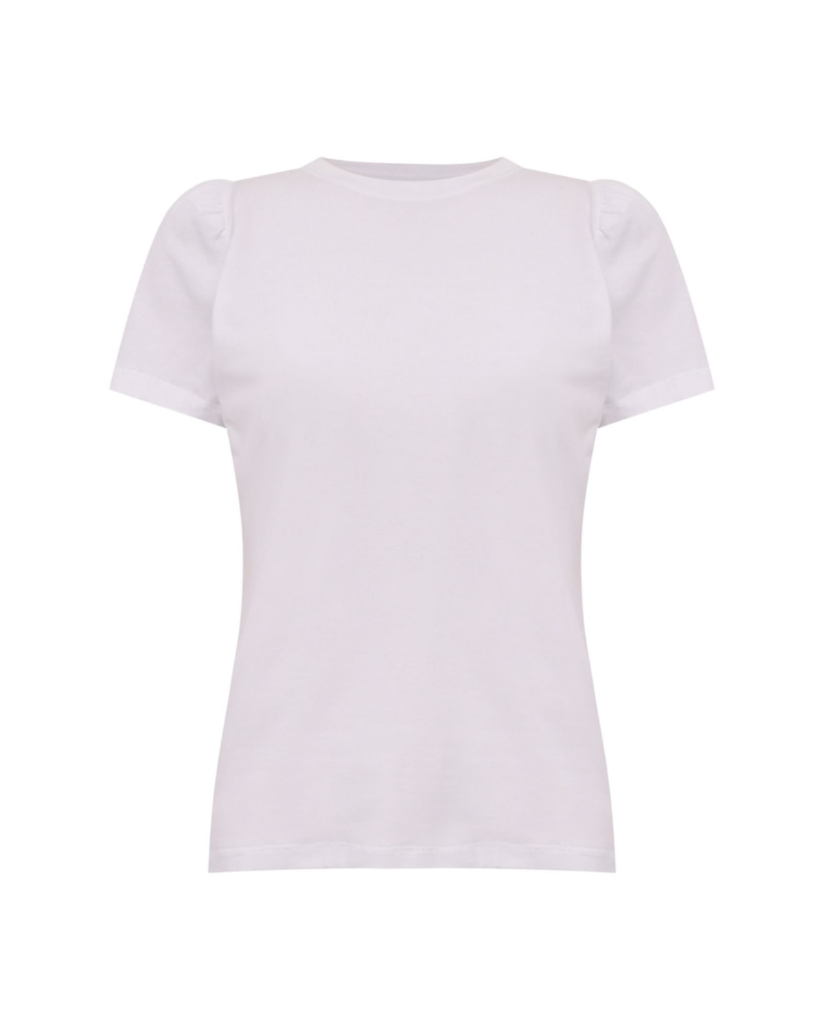 Mangas e Acabamento: O destaque da peça são as mangas curtas em formato puff, com uma estrutura interna que garante seu volume elegante e duradouro, mesmo após múltiplas lavagens.