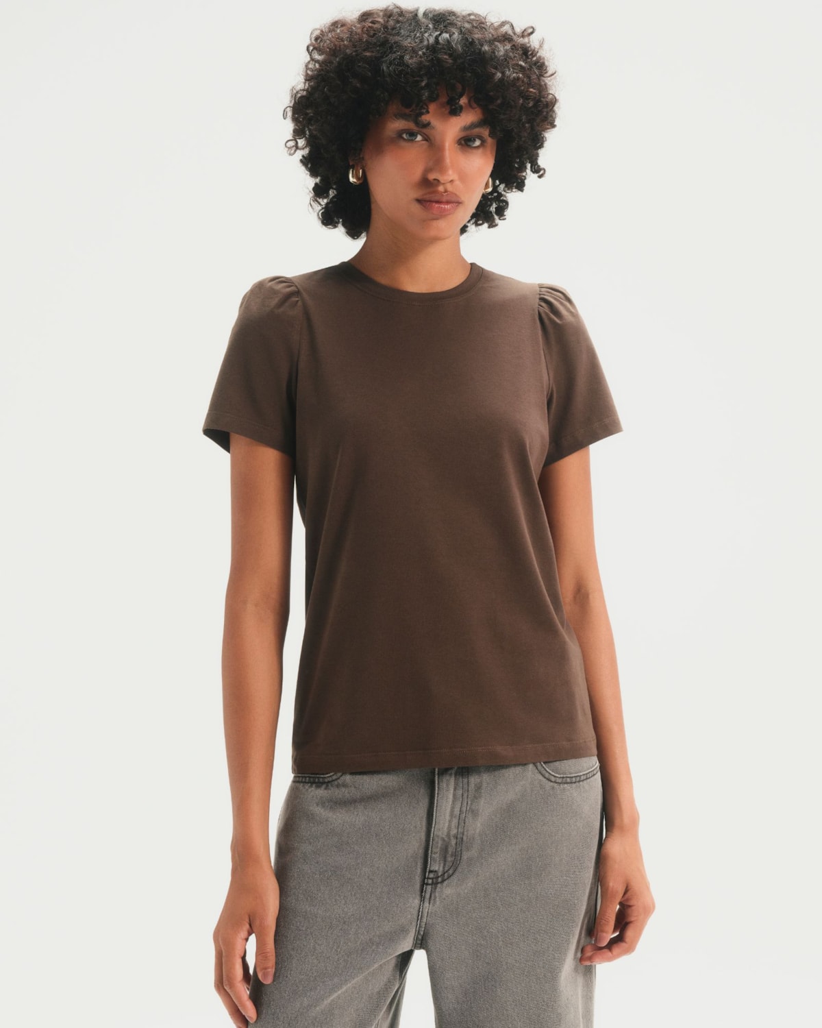 Fibras cuidadosamente selecionadas garantem um tecido uniforme, macio, com caimento impecável e toque refinado.