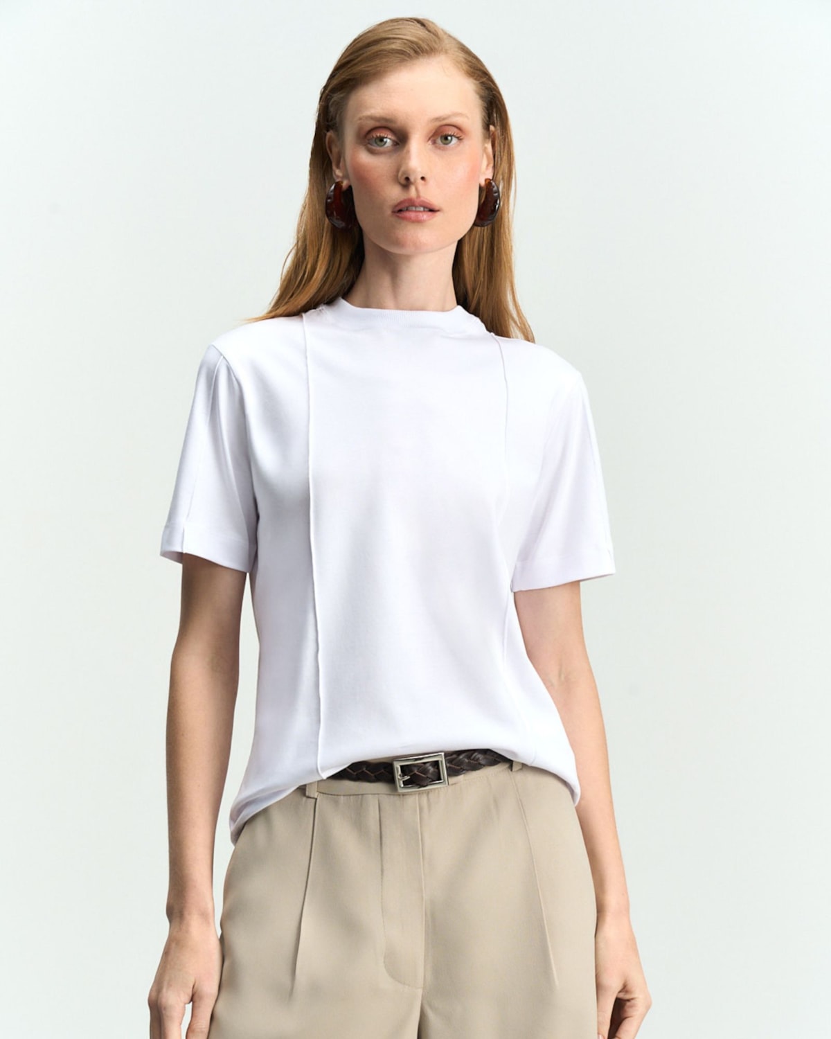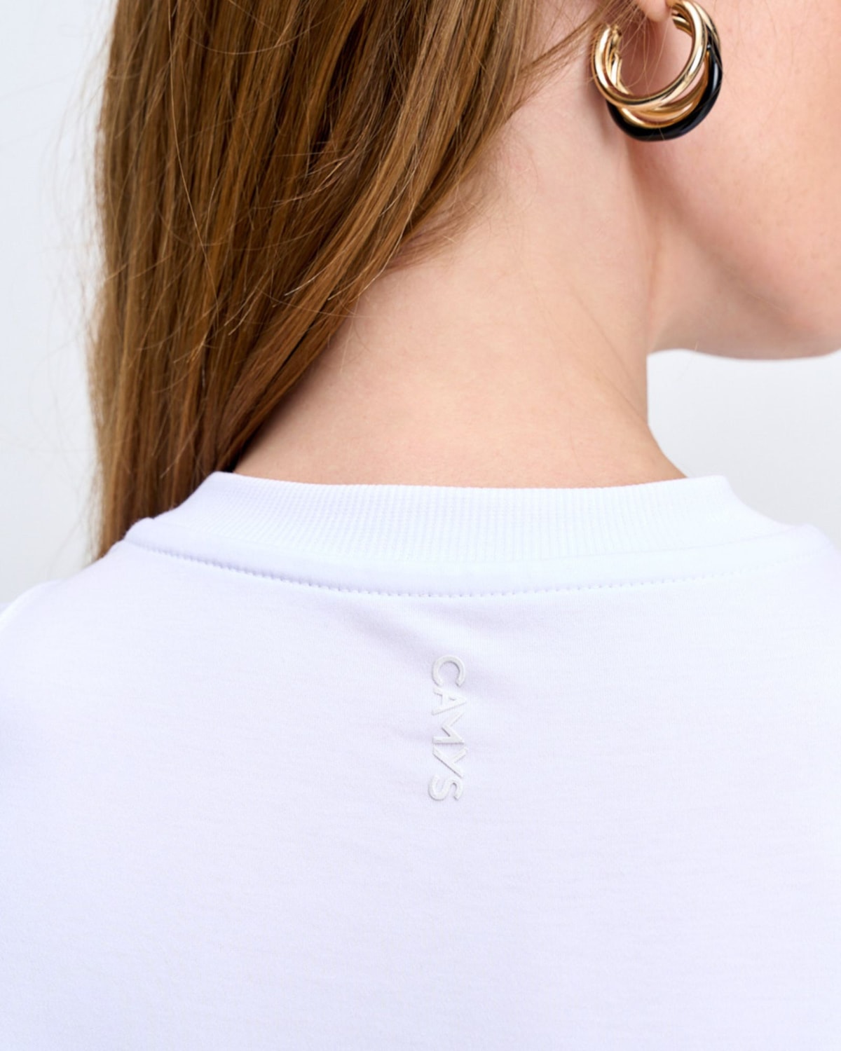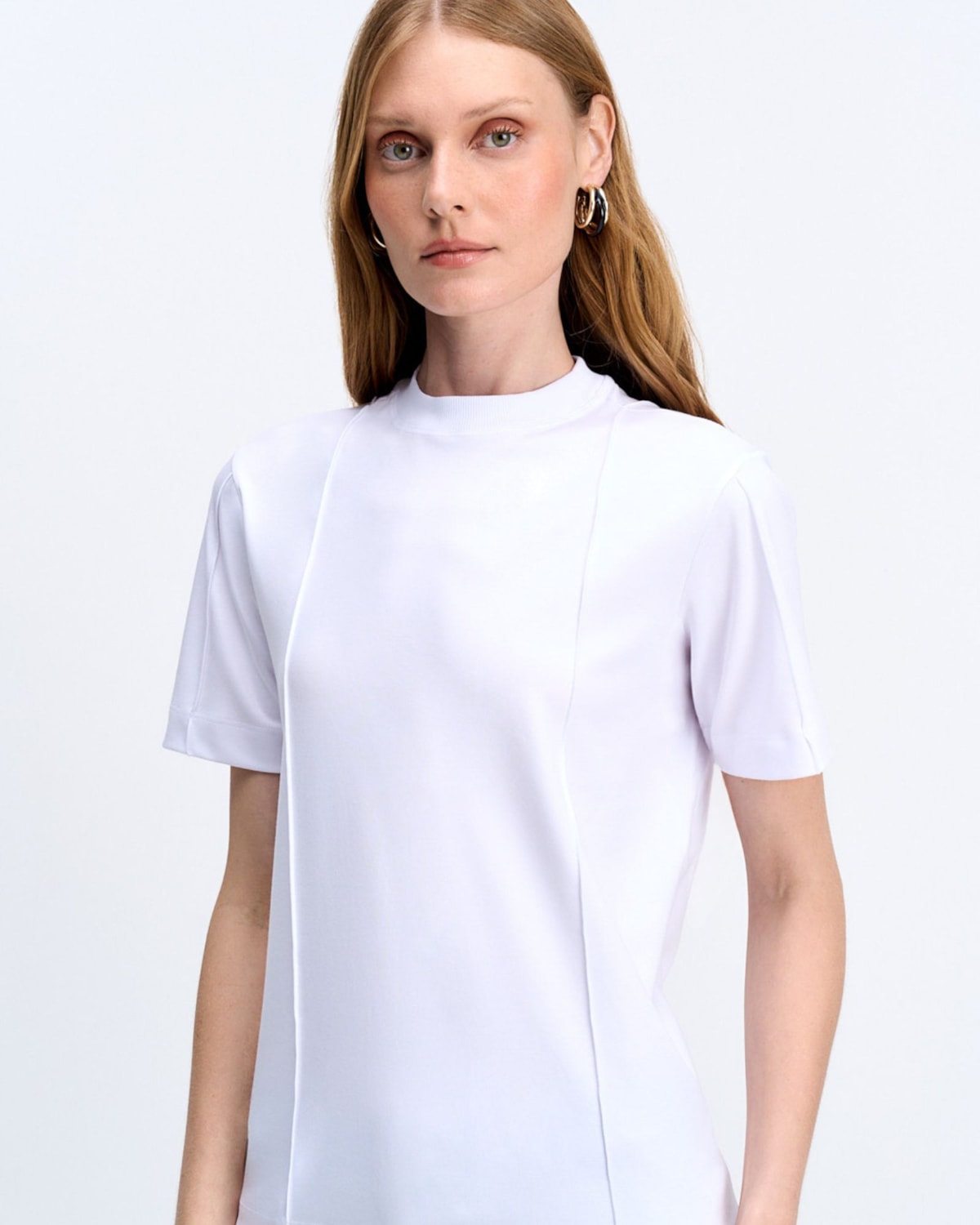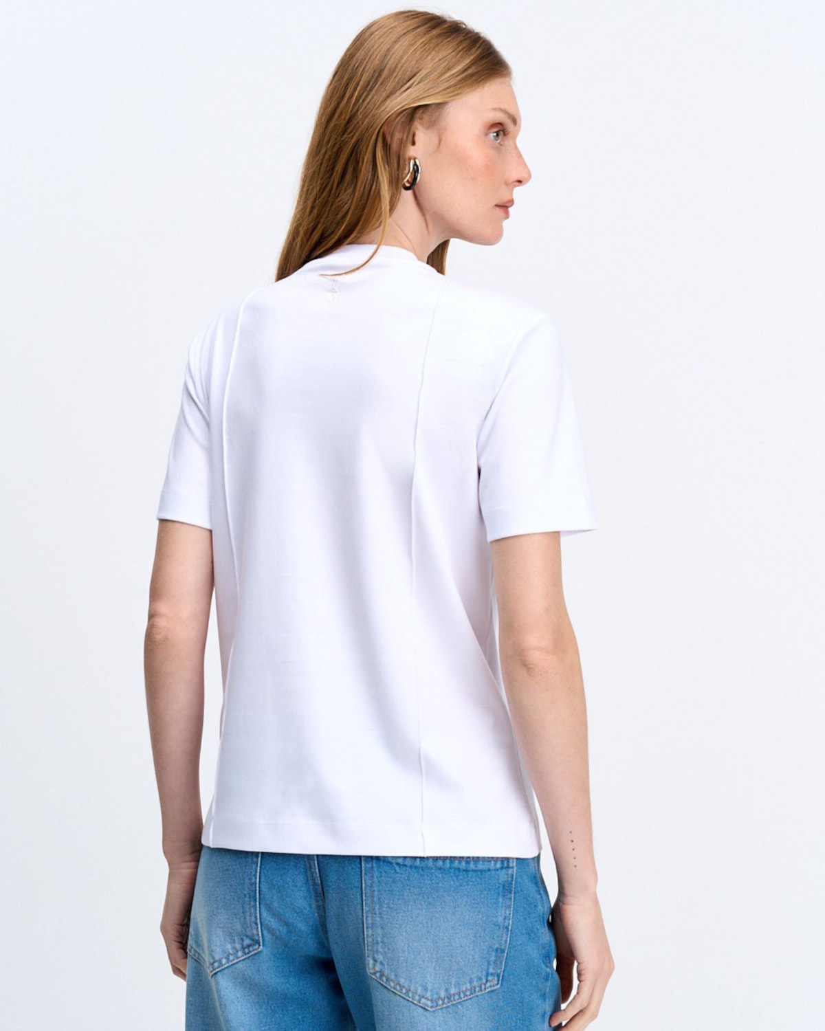 Camiseta Legacy - Branca Algodão Pima: Confeccionada em Algodão Pima, uma das fibras mais nobres do mundo. Seu fio extrafino e de origem certificada garante um toque de suavidade incomparável e durabilidade premium. Shape e Caimento: Modelagem de shape comfy e caimento impecável, que veste o corpo com conforto e elegância. O comprimento é versátil, ideal para compor looks por dentro ou por fora da calça. Decote: Decote redondo clássico, elevado por um delicado friso. Este detalhe confere sofisticação e uma identidade única ao design minimalista da peça. Mangas e Acabamento: As mangas curtas possuem um acabamento igualmente adornado com o friso, criando uma harmonia visual perfeita. A construção da peça é pensada para máxima durabilidade. Atemporal e Essencial: Uma peça-legado, que une o conforto supremo do algodão Pima com um design atemporal e sofisticado. É a base perfeita para construir um closet de peças essenciais e de alta qualidade. A modelo Cibele veste tamanho P. | Altura: 1,77cm - Manequim: 36.