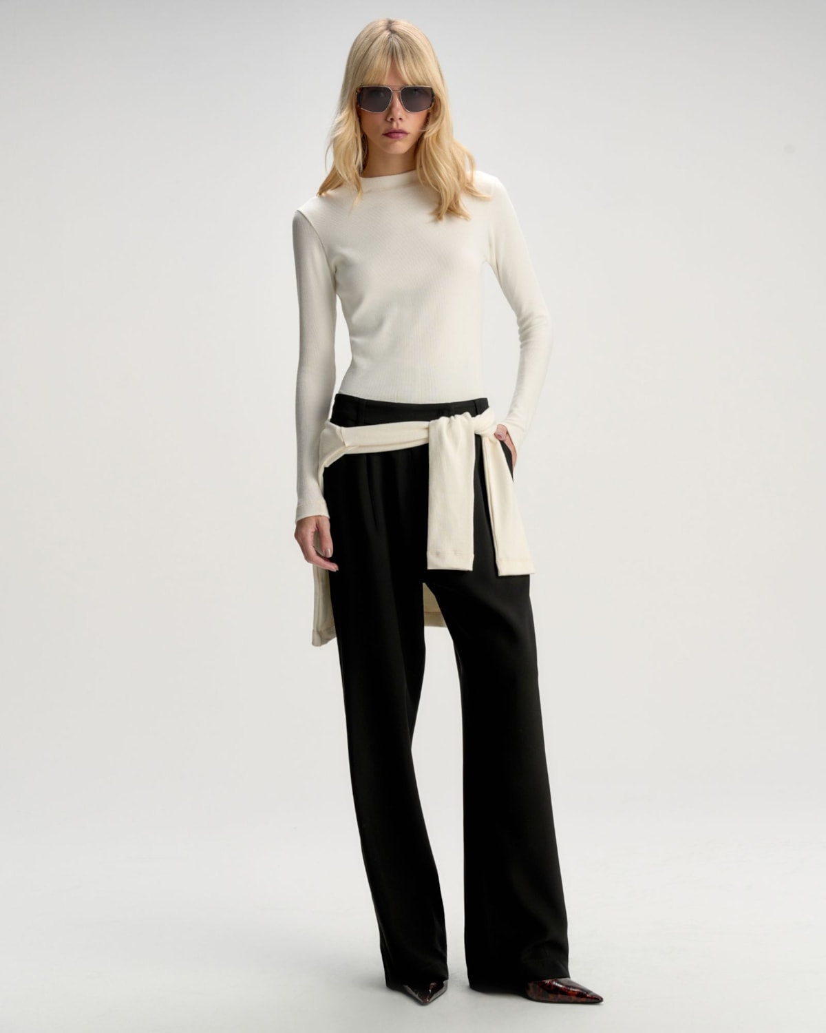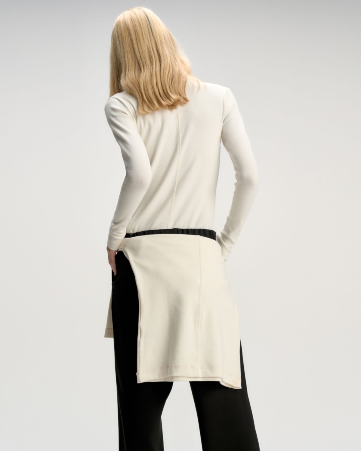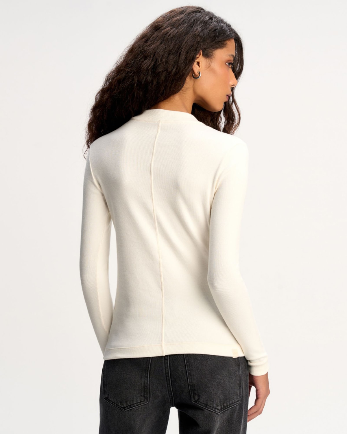 Mangas Longas: As mangas longas acompanham o shape justo da peça, conferindo elegância e alongando a silhueta. O acabamento preciso nas barras mantém o caimento contínuo e confortável.