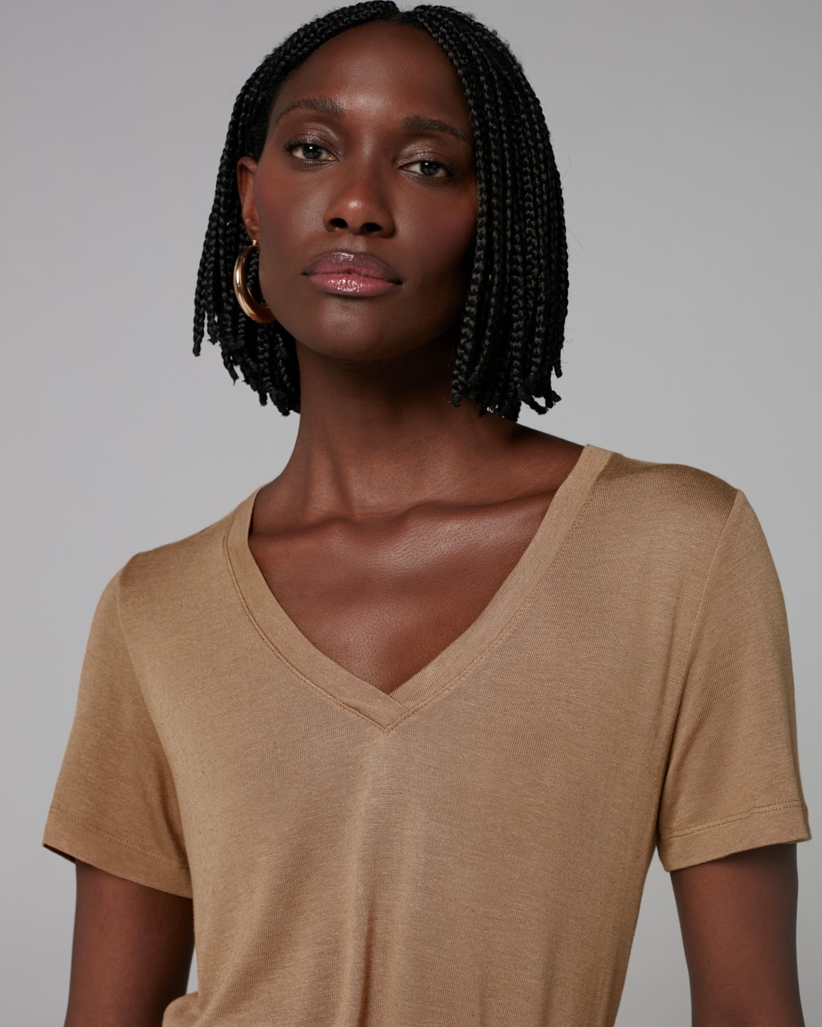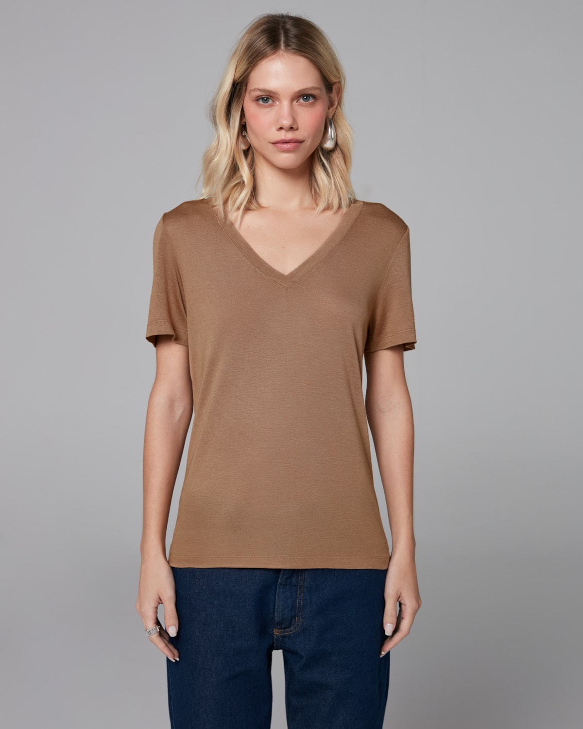 Camiseta Refreshing em decote V profundo, uma peça essencial para o verão.