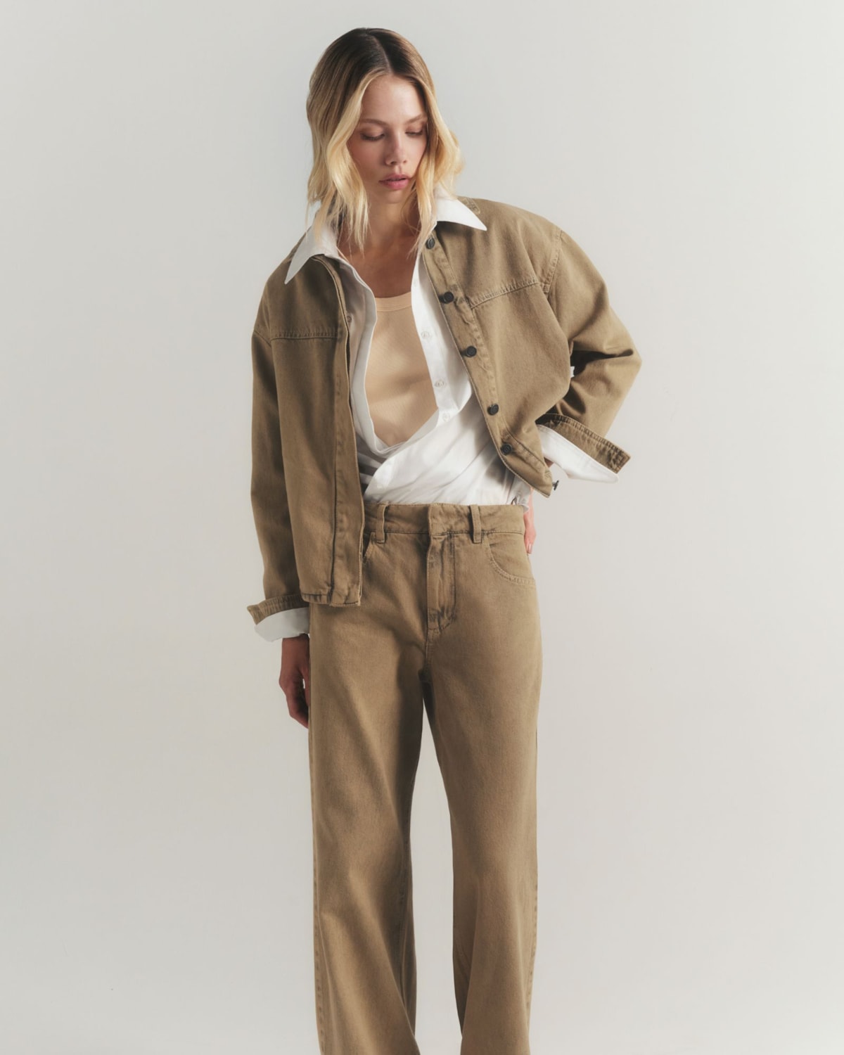 Denim Premium e Toque: Confeccionada em denim premium, com uma estrutura que garante um caimento de alfaiataria e um toque macio. A lavagem versátil torna a peça um item-chave para transitar por todas as estações.