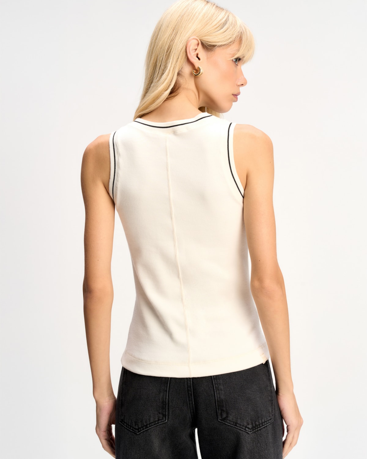 Shape e Modelagem: Modelagem ajustada com decote redondo que valoriza a silhueta de forma natural. O corte oferece um design moderno e minimalista, ideal para composições versáteis.