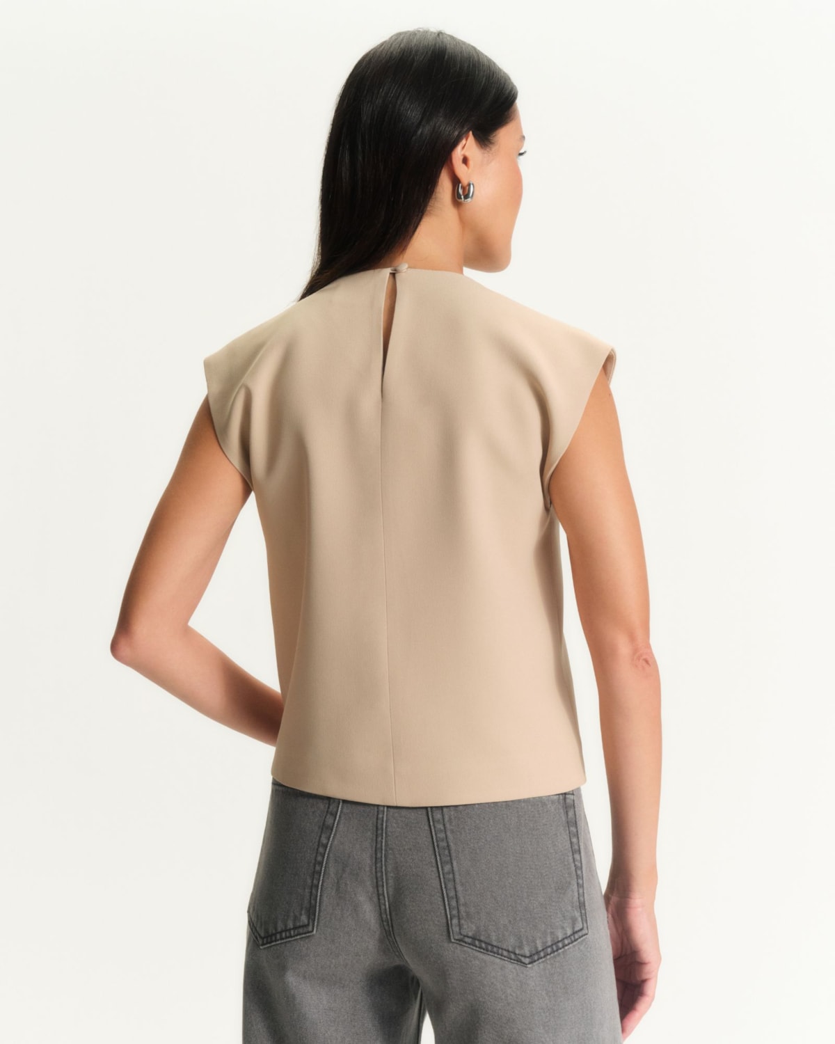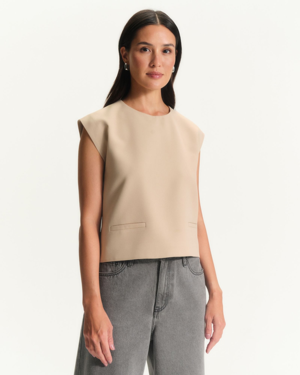 Shape e Modelagem: Modelagem estruturada com decote fechado, proporcionando um visual moderno e minimalista. O corte valoriza a silhueta com elegância e sofisticação.