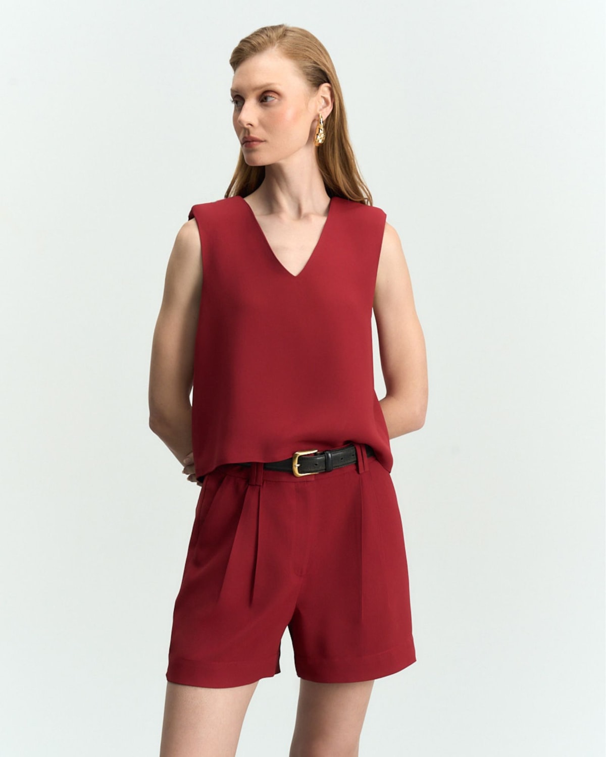 Shorts Dopamine Cós Largo Crepe Patou - Bordô Soft